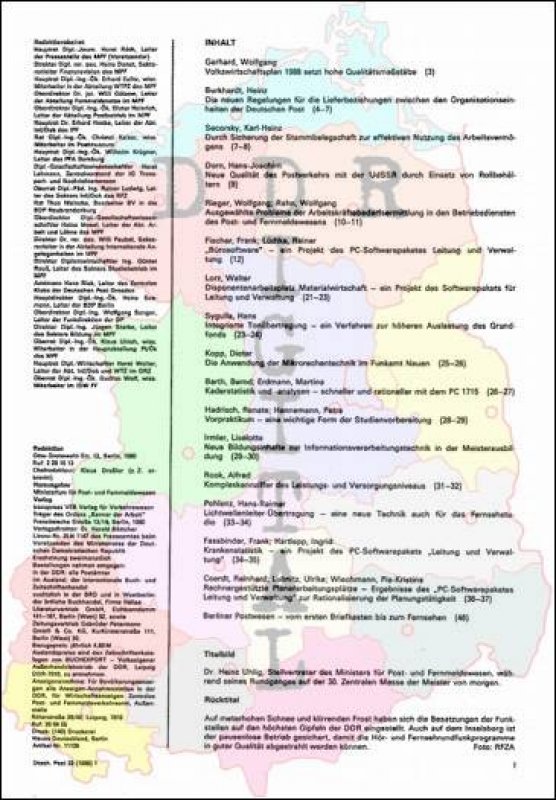 Ausgabe: Autor: Redaktionsbeirat Herausgeber: Ministerium für Post- und Fernmeldewesen Erscheinungsjahr: 1988 Anzahl Seiten: 52