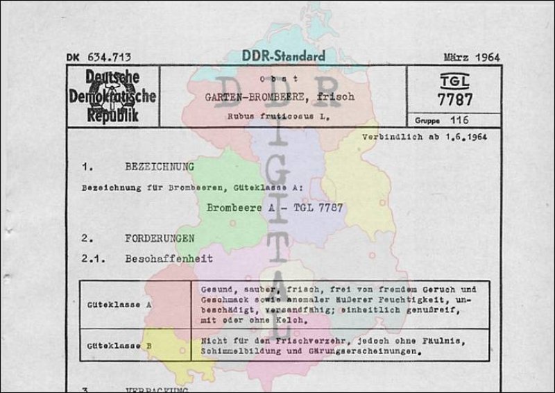 Standard: DDR-Standard Ausgabe: März 1964 verbindlich ab: 01.06.1964 Zuständiger Fachbereich: 80, Landwirtschaft, Erfassung und Forstwirtschaft bestätigt am: 23.03.1964 Bestätigt von: Amt für Standardisierung Berlin Anzahl Seiten: 2