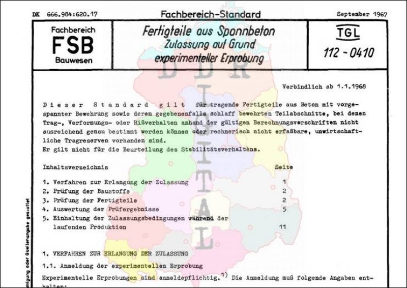 Standard: Fachbereichstandard Ausgabe: September 1967 verbindlich ab: 01.01.1968 Verantwortlichh: bestätigt am: 28.09.1967 Bestätigt von: Ministerium für Bauwesen Anzahl Seiten: 12