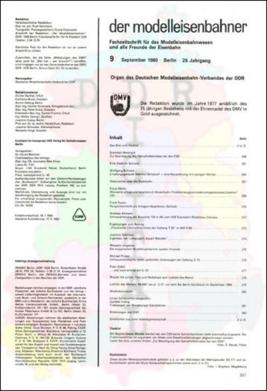 Ausgabe: 29. Jahrgang Autor: Redaktionsbeirat Herausgeber: Deutscher Modelleisenbahn-Verband der DDR Erscheinungsjahr: 1980 Anzahl Seiten: 32