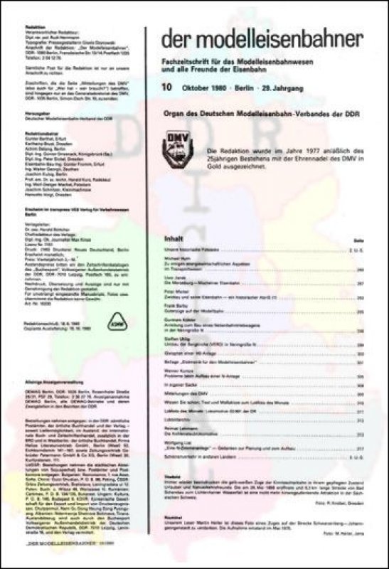 Ausgabe: 29. Jahrgang Autor: Redaktionsbeirat Herausgeber: Deutscher Modelleisenbahn-Verband der DDR Erscheinungsjahr: 1980 Anzahl Seiten: 40