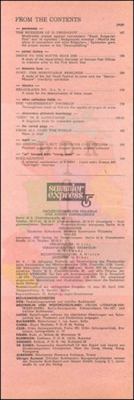 Auflage: Autor: Redaktion "sammler express" Herausgeber: Philatelistenverband im Kulturbund der DDR Erscheinungsjahr: 1964 Anzahl Seiten: 24