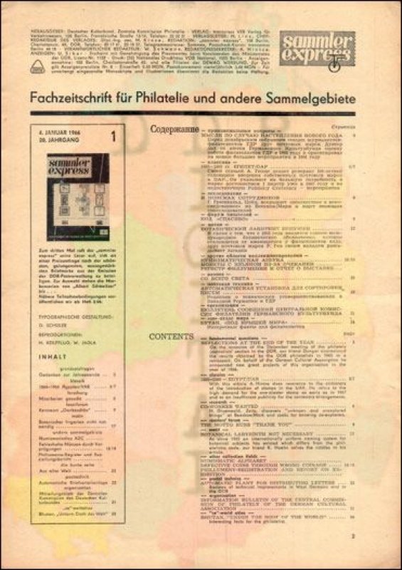 Auflage: Autor: Redaktion "sammler express" Herausgeber: Philatelistenverband im Kulturbund der DDR Erscheinungsjahr: 1966 Anzahl Seiten: 24