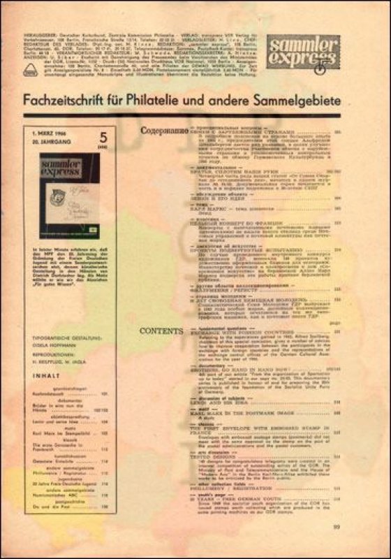 Auflage: Autor: Redaktion "sammler express" Herausgeber: Philatelistenverband im Kulturbund der DDR Erscheinungsjahr: 1966 Anzahl Seiten: 24