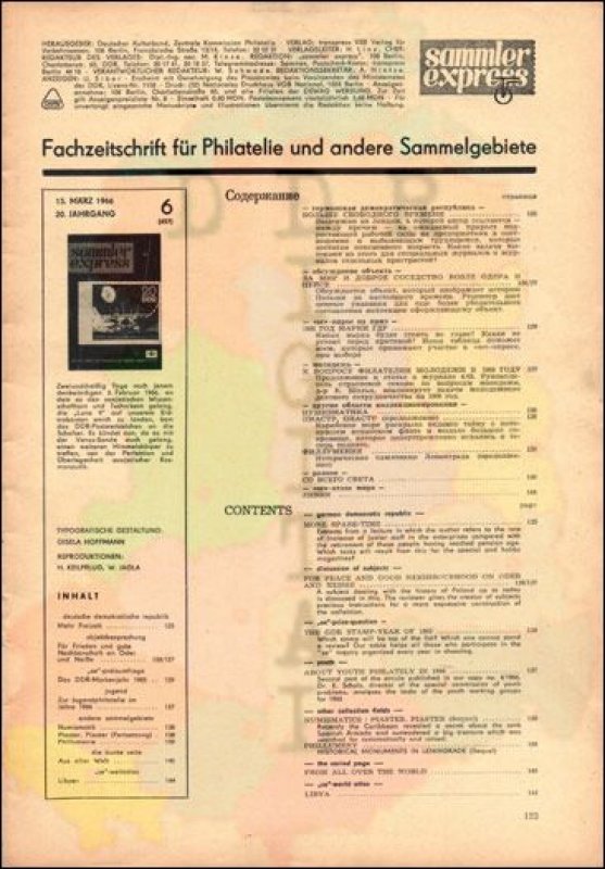 Auflage: Autor: Redaktion "sammler express" Herausgeber: Philatelistenverband im Kulturbund der DDR Erscheinungsjahr: 1966 Anzahl Seiten: 24