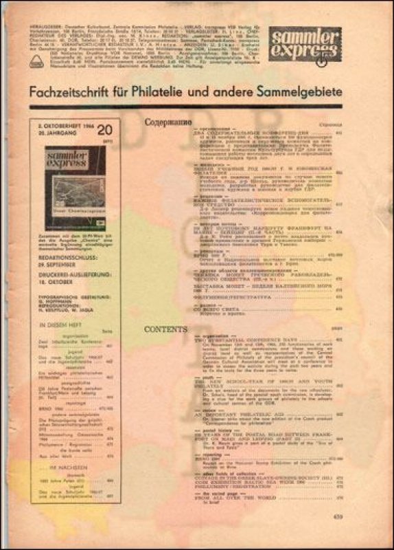 Auflage: Autor: Redaktion "sammler express" Herausgeber: Philatelistenverband im Kulturbund der DDR Erscheinungsjahr: 1966 Anzahl Seiten: 24