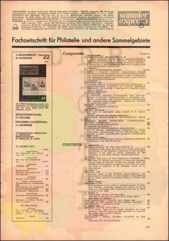 Auflage: Autor: Redaktion "sammler express" Herausgeber: Philatelistenverband im Kulturbund der DDR Erscheinungsjahr: 1966 Anzahl Seiten: 24