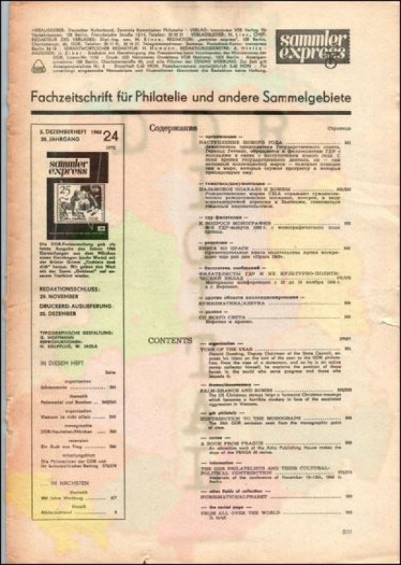 Auflage: Autor: Redaktion "sammler express" Herausgeber: Philatelistenverband im Kulturbund der DDR Erscheinungsjahr: 1966 Anzahl Seiten: 28