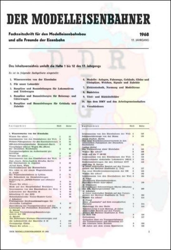 Ausgabe: 17. Jahrgang Autor: Redaktionsbeirat Herausgeber: Deutscher Modelleisenbahn-Verband der DDR Erscheinungsjahr: 1968 Anzahl Seiten: 4