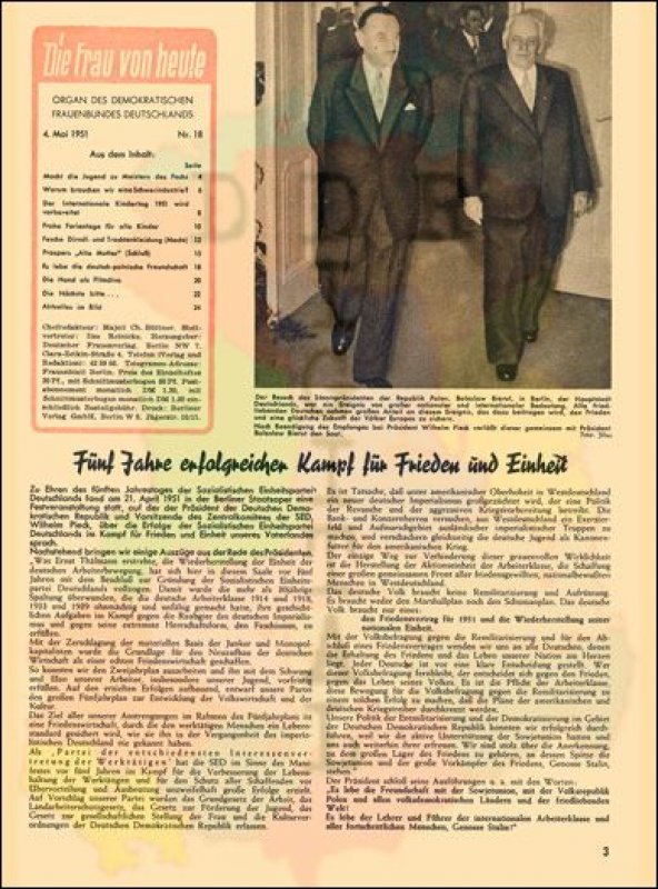 Ausgabe: Autor: Redaktion Herausgeber: Deutscher Frauenverlag Erscheinungsjahr: 1951 Anzahl Seiten: 20 Notiz: