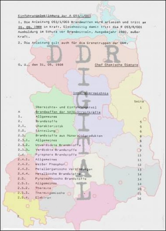 Erscheinungsjahr: 31.05.1988 tritt in Kraft: 01.09.1988 Autor: Chef Chemische Dienste Herausgeber: Ministerium für Nationale Verteidigung Anzahl Seiten: 68